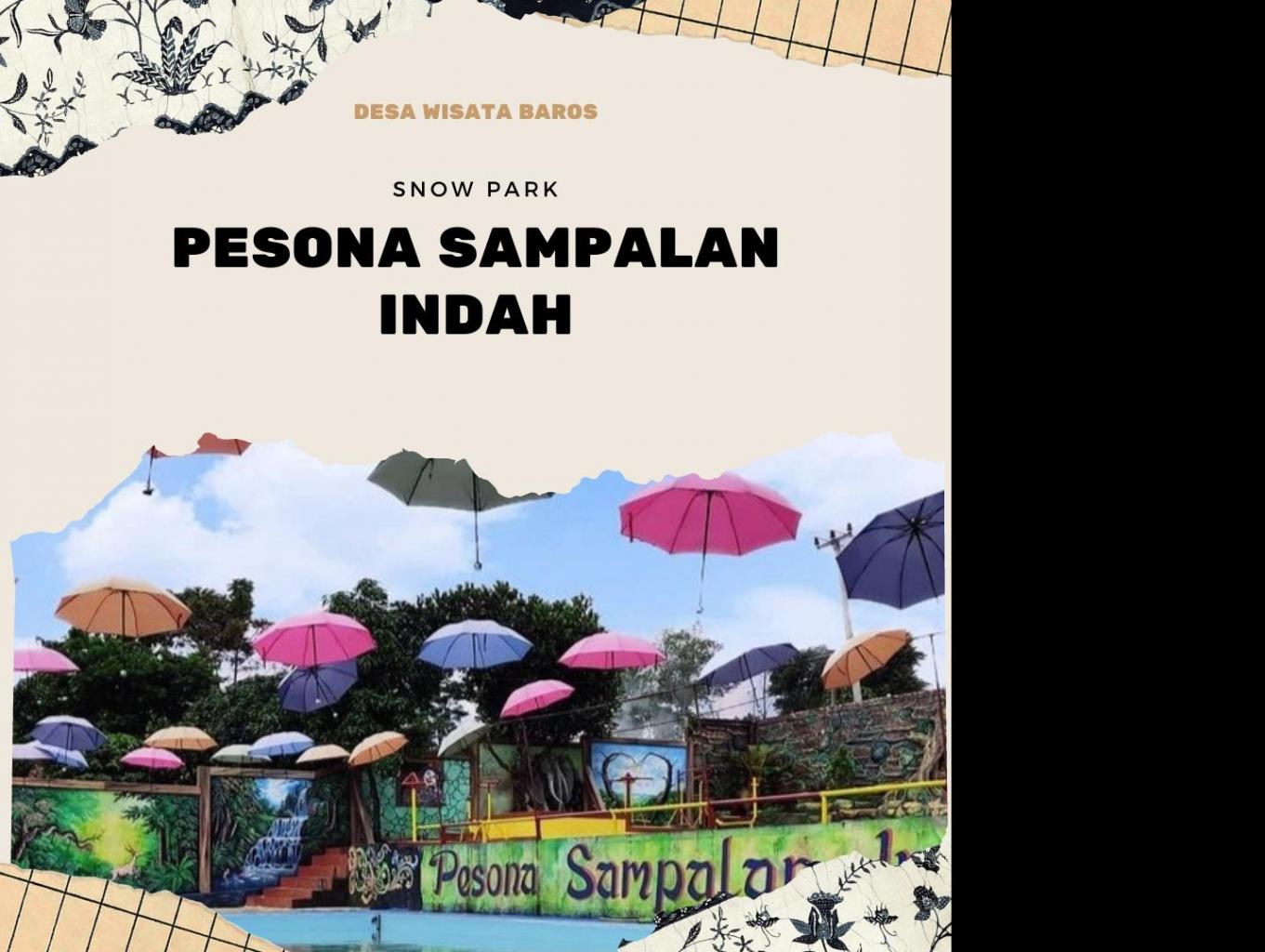 Di dalam desa wisata baros terdapat kolam renang sampalan indah yang terdiri dari 2 kolam utama, dan terdapat aula pertemuan Gedung serbaguna, selain itu ada juga saung saung keluarga dan spot foto selfi
