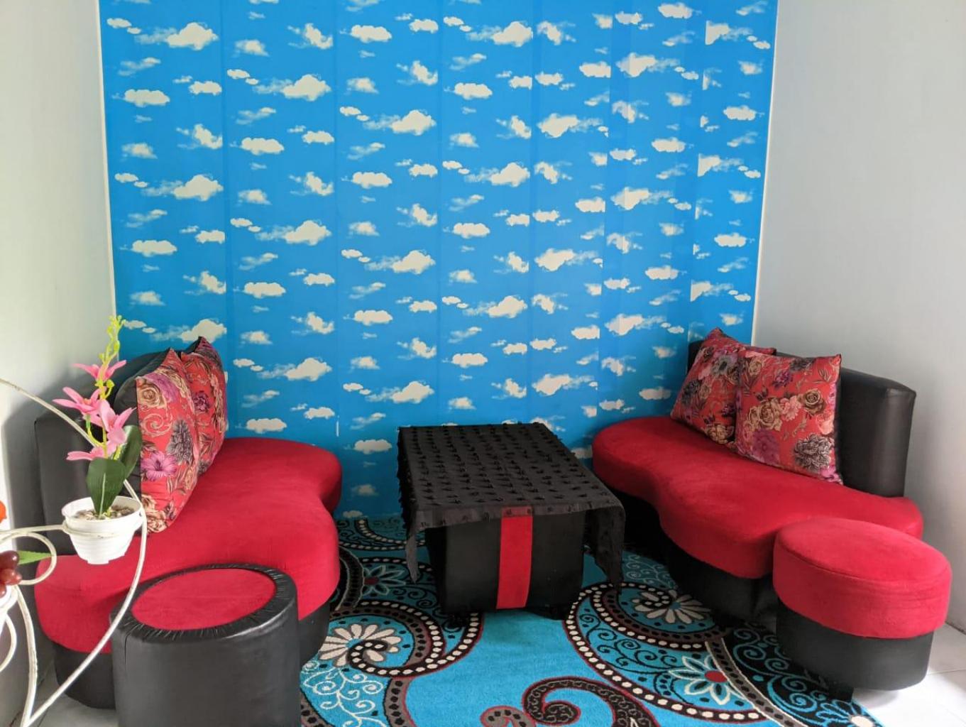 kamar Homestay yang bersih, rapi dan terdapat ruang tamu yang luas