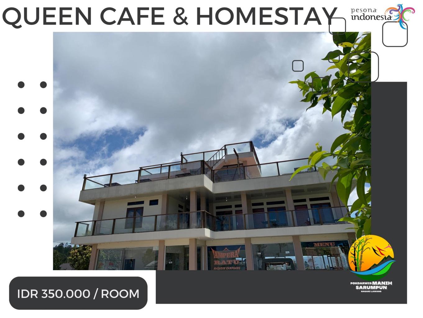 Queen Homestay bertipe kamar standart ini berada di lantai dua bangunan dan memiliki view Danau Maninjau